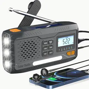 Emergency Hand Crank Radio, 7400mWh Solar Weather Radio with AM/FM/NOAA, Battery Powered Radio with Cell Phone Charger, Digital Display, Flashlight, Headphone Jack & SOS Alarm for Outdoor/Survival