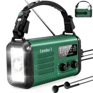 Emergency Weather Radio (Condor 1) NOAA/AM/FM with 74000mWh Portable Radio, USB-C/Solar/Hand Crank Charging, SOS Alarm, Flashlight, Reading Lamp & Survival Handle Kit for Indoor/Outdoor Emergency