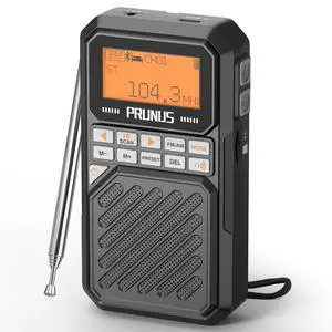 PRUNUS J525 Portable Radio AM FM with Bluetooth Earphone Output & Bluetooth Speaker Mode, Preset, 2500mAh Rechargeable, Micro SD Playback with Shuffle & Sequential Play, Headphone Jack, Sleep Timer