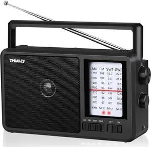ZHIWHIS Shortwave Radio, AM FM SW Hand-held Radio, Portable Receiver by 4 AA Batteries, 4 inch Large Speaker, External Antenna Port, for Home ZWS-206 Indicative Style