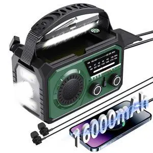 16000mAh Emergency Weather Radio, AM/FM/NOAA Weather Alert Radio Hand Crank/Solar/Type-C Fast Rechargeable Outdoor Radio with Reading Lamp/SOS Alarm/3 Mode Flashlight/Power Bank(Green)