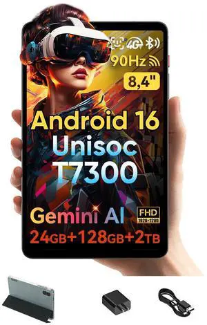 BNCF 8.4" Android 16 Tablet with Gemini AI, Unisoc T7300 Octa-Core 24(8+16) GB RAM 128GB ROM 2TB TF, FHD 90Hz Portable BPad T1, 13MP Camera 4G LTE & Wi-Fi 6 & BT5.4 & GPS 5500mAh with Protective Case