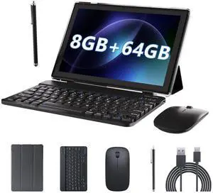 10 Inch Android 15 Tablet, 2 in 1 Tablets with Keyboard/ Mouse/ Case/ Stylus, 8GB RAM+32GB ROM/1TB Expandable, 1.8Ghz Quad-core Processor, 1280*800 HD Touch Screen, 8MP Camera, 2.4G/5G WIFI 6 Tablet