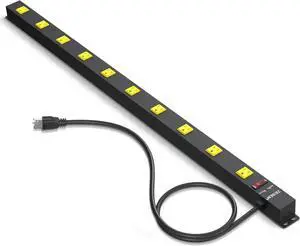 10 Outlet Heavy Duty Long Power Strip Surge Protector with 4ft Cord for Garage Workshop Workbench, ETL Certified, Black