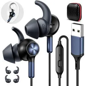 APETOO Wired Earbuds USB Computer Headphones with Anti-Fall/Hurt Wingtips for PC/Laptop/PS5 4 - Mute Mic, 7.1 Surround Sound, 7.5ft Noise Canceling in-Ear Type A Headset for Men/Women/Small Ear/Indoor