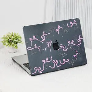 Black Glitter Bows Case for MacBook Air 13 inch 2025 M4, 2024-2022 M3 M2 A3240 A3113 A2681, Cute Girly Y2K Aesthetic Plastic Hardshell & Keyboard Cover for MacBook Air 13.6 inch, Pink Bows