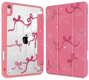Tuiklol Case for iPad Air 11'' (M3 2025/M2 2024) 6th Gen/iPad Air 10.9'' 2022 2020 5th /4th Gen, Buit in Pencil Holder with Shockproof Cover Clear Back Auto Wake/Sleep, Bow-Watermelon Red