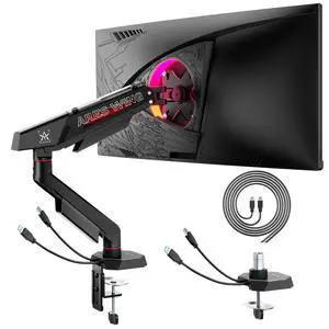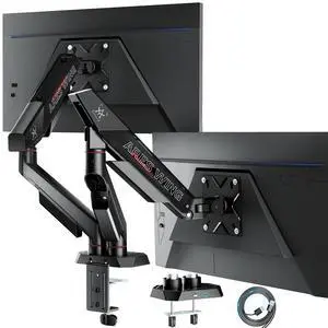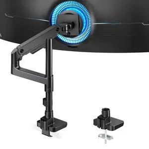 DreamAxis Heavy Duty Single Monitor Arm for 13-42" Ultrawide Screen, Adjustable Monitor Mount with Tilt Rotation Swivel, Gas Spring Desk Mount Bracket with Clamp/Grommet, Holds 33lbs, Max VESA 100x100