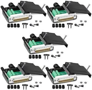 ANMBEST 5PCS DB25 Solderless Connector, RS232 D-SUB Serial to 25-pin Port 16mm Thinner Terminal Male Adapter Breakout Board with Case Long Bolts Nuts