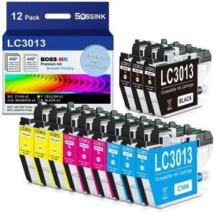 BOSSINK 12 Pack LC3013 Ink Cartridges BK/C/M/Y Compatible for Brother LC3013 LC3011 High Yield Work for Brother MFC-J497DW MFC-J491DW MFC-J690DW MFC-J895DW Printer