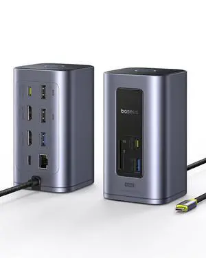 Baseus Docking Station Dual Monitor, Nomos Win Air(12 in 1) Laptop Dock, 2*4K HDMI, 10Gbps USB Ports, 1Gbps Ethernet, PD 100W(No Power Adapter), USB C Docking Station for Dell/HP/Lenovo/Asus/Acer/Mac