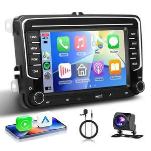 Single Din Car Stereo Radio with Carplay Android Auto,7 Inch HD IPS Manual Touch Screen,5.0Bluetooth Car Stereo with Backup Camera,GPS,Mirror Link,SWC,EQ,Airplay,Android Cast,Fast Charging,AUX/2.0 USB