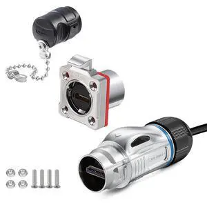 CNLINKO BD-24 HDMI Connectors, Metal Aviation Plug with 40 Inches 4K HD Cables, Panel Mount Socket, Mated Connectors for Video Equipment, IP68 Waterproof Connector, M24 Signal Connectors (HDMI Set)