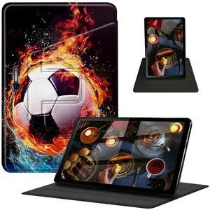 Case for 12.3" Microsoft Surface Pro 7/Pro 6/Pro 5/Pro 4, 360 Degree Rotating Swivel Stand PU Leather Cover with Auto Wake Sleep for Surface Pro 7 Plus, Water Fire Soccer Ball