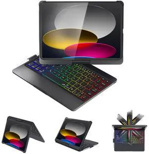 BABG Keyboard Case for iPad 10th Generation&iPad 11th(A16,2025),iPad Air 11/iPad Pro 11 inch Keyboard&iPad Air 5th/Air 4th Keyboard,Non-Trackpad,360Swivel,7 Use Modes,Backlight-Black