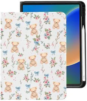 BlHMCASE Cute Kawaii Bear Flower for iPad (A16) Case 11th/10th Generation 11''/10.9'' 2025/2022 with Pencil Holder, Auto Sleep/Wake and Multiple Viewing Angles, White Leather Soft TPU Back Cover