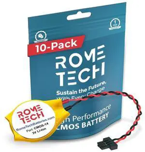 Rome Tech CMOS Battery for Lenovo ThinkPad T430u X120E X121e X130e X131e X140e, Edge 11 Edge E130 - Laptop Backup BIOS RTC 3V CR2025 Battery with 2 Wire Cable FI Connector (10-Pack)