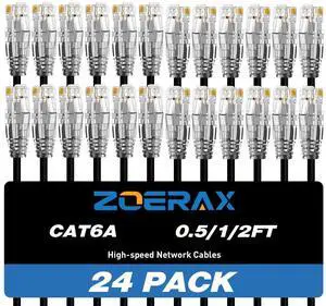 ZOERAX Cat6a Patch Cables 2ft (24 Pack), Slim Cat6 Ethernet Patch Cable 10Gbps 550MHz, RJ45, Gold-Plated Connectors, Internet for PC, TV, Tablet, Router, Printer, Servers, IT Data Center