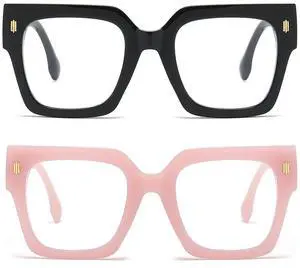 Breaksun Fashion Oversized Blue Light Blocking Glasses for Women Men Trendy Big Square Frame Computer Eyeglasses (Black+Pink)