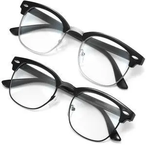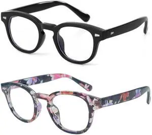 Onrtry Round Blue Light Glasses for Women Men Small Thick Frame Eyeglasses Non Prescription Glasses Clear lens Eyewear 2 Pack(Black+Flower)