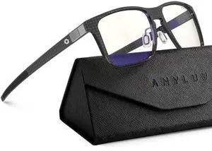ANYLUV Blue Light Glasses Men, Carbon Fiber Square Eyewear, Lightweight Computer Gaming Glasses, Anti Eyestrain