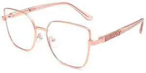 Dollger Pink Oversized Square Blue Light Blocking Glasses for Women Trendy Oversized Computer Gaming Eyeglasses Cat Eye Metal Frame bluelight glasses Rose Gold