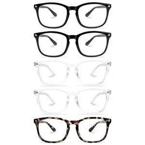 Blue Light Blocking Glasses for Men 5Pack Square Blue Light Glasses for Woman Glasses Frames for Women Computer Glasses for Eye Strain Black Frame Glasses Clear Frame Glasses and Leopard Frame Glasses