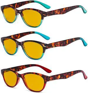 Eyekepper 3 Pack Vintage Design Blue Light Blocking Readers Blue Glare Filter Computer Reading Glasses Amber Tinted +2.00