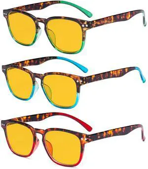 Eyekepper 3 Pack Reading Glasses Blue Light Blocking Computer Eyeglasses Yellow Tinted Filter Lens Pattern Design +1.50