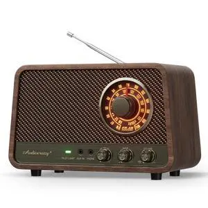 LoopTone FM AM Radio Retro Wood Radio with Bluetooth Play Mp3 and Antenna Built in Speaker for Kitchen Living Room Coffee