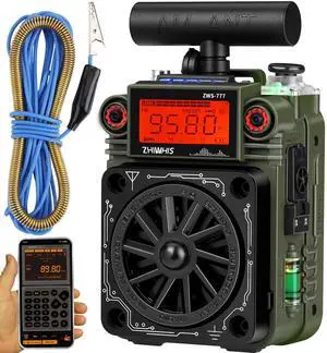 ZHIWHIS AM FM Shortwave Radio with Bluetooth and NOAA Alert, Small Rechargeable Radios with APP Control, Bass, SOS Alarm, Preset, T-Type Antenna, Emergency w/ 9.9 Ft Wire Antenna for Camping ZWS-777
