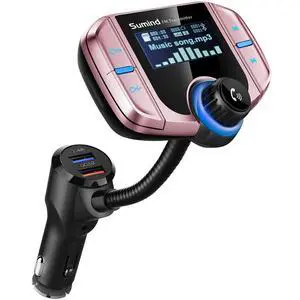 Sumind 2026 Upgraded Wireless Bluetooth Car Adapter FM Transmitter, 1.7'' LCD Display, Flexible Gooseneck, 20W QC3.0&Dual USB Ports, AUX Input/Output for Hands-Free Call, Micro/TF Card(Rose,Normal)