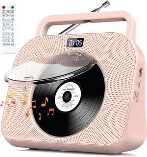 Desktop CD Player With Dual Speakers, FM Radio, Bluetooth, Remote Control, LCD Display - Supports USB/TF Card/AUX/3.5mm Input (Pink)