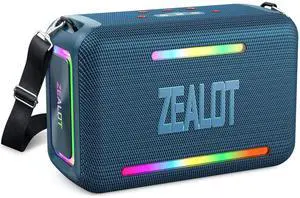 ZEALOT Bluetooth Speaker, 120W Loud Wireless Speakers IPX6 Waterproof Bluetooth Subwoofer Speaker with LED Light, Custom EQ, 40H Playtime, Portable Speakers for Outdoor, Party
