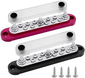 Ampper Power Distribution Block Bus Bar 12V, 3 x M6 (1/4") Studs & 10 x M4 (#8) Terminal Screws, 5.9" HD 150A Marine BusBar Battery Distribution Block W/Cover (Red & Black)