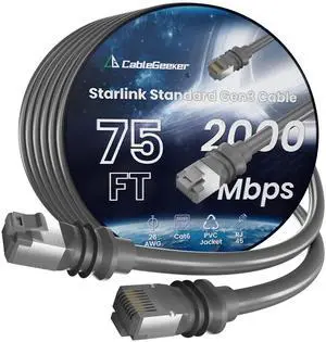 CableGeeker 75FT Starlink Gen 3 Cable, Waterproof Replacement Ethernet Wire for Standard Gen 3 Dish & Router, Outdoor Rated Cat6 with Gold-Plated Connectors (23M, Grey)