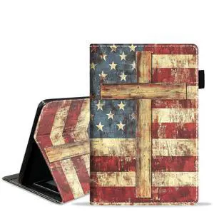 BXIKEOPIU Case for Kindle Fire 7 Tablet (7" Display, 12th Generation, 2022 Release), Slim PU Leather Stand Folio Cover with Card Slot & Auto Wake Sleep, Patriotic American Flag Bald Eagle