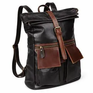 Bebowden Full-Grain Leather Backpack for Men - Roll-Top Expandable Design, Fits 16" Laptop & Anti-Theft Pocket(8639-Dark Brown)