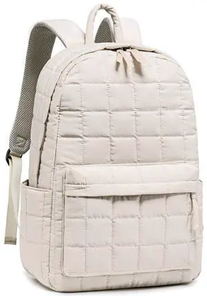 BTOOP Travel Backpack for Women Work Backpack Quilted College Backpacks for School Fit 15.6 Inch Laptop (Beige-Gray)