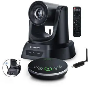 TONGVEO 5.8GHz Wireless Conference Room Camera System ^^ 3X 60fps PTZ Camera with Bluetooth Microphone, 50ft Range, Compatible with Zoom, OBS - Easy Setup for Worship and Online Meetings