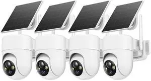 Oculview 2K Solar Security Cameras Wireless Outdoor, 4PCS Outdoor Camera Wireless with 360 View, Cameras for Home Security with Color Night Vision, Only Support 2.4GHz Wi-Fi, 4 Pack, White