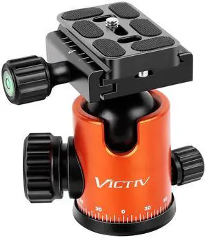 VICTIV Tripod Ball Head 360 Degree Rotating Panoramic Ballhead with 1/4 inch Quick Shoe Plate Bubble Level, for Tripod Monopod Slider DSLR Camera Camcorder, Max Load up to 5 kg/ 11lb Orange
