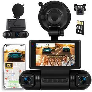 3604 Channel 2K Dash Cam Front and Rear Inside,3 Dash Camera for Cars Car Camera with WiFi,APP Control,IR Night Vision,Loop Recording,G-Sensor,Parking Assistance,24H Parking Monitor+128G SD