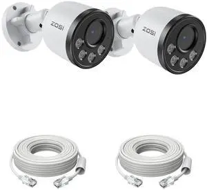ZOSI 2PK 4MP Add-on Camera with Ethernet Cables,Outdoor PoE Security Camera with Audio,Night Vision,Smart Human Detection,IP66 Weatherproof,Remote Access,Only Work PoE NVR System