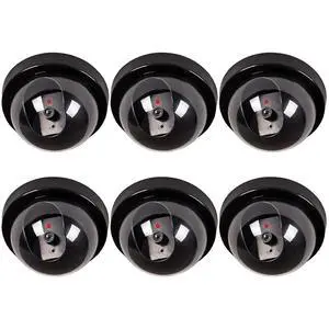 WALI Dummy Fake Security CCTV Dome Camera with Flashing Red LED Light with Security Alert Sticker Decals (SD-6), 6 Packs, Black