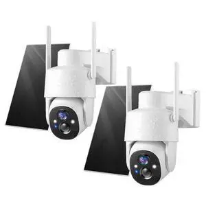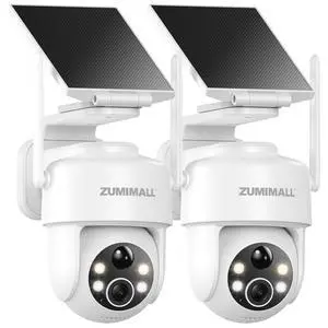 ZUMIMALL 2K Solar Security Cameras Wireless Outdoor 2-Pack, 360 PTZ Camera for Home Security with Color Night Vision, Flexible Mount, PIR Motion, 2-Way Talk, Free Cloud Storage, Work with Cloudedge