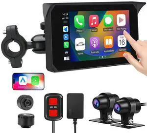 VSYSTO Motorcycle Carplay Screen, Wireless Carplay and Android Auto, Tire Pressure Sensors, GPS, Dual BT 5 Inch Touchscreen WiFi Motorcycle Dash Camera Waterproof HD 1080P Front and Rear Camera(5inch)