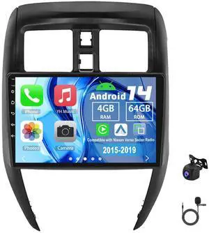Slakerbe Android 14 Double Din Car Radio Compatible with Nissan Versa Sedan Radio 2015-2019, 4G+64G 10" Touch Screen Car Stereo with Wireless Carplay Android Auto GPS WiFi Mic Backup Camera