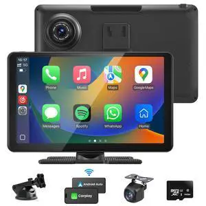Compatible Wireless Apple CarPlay Android Auto Screen for Car, 2K Dash Camera 9 Inch 1080P Touch Screen Stereo Bluetooth Portable GPS Navigation Vedio Player Mirror Link, Airplay, Siri, Voice Control