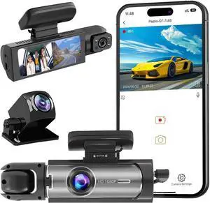 Dash Cam Front and Rear Inside,Dashcam for Cars with APP Control,Car Camera Driving Recorder with 64G Card IR Night Vision,Loop Recording,3.16 Inch IPS Screen,Parking Mode (Front+Inside+Rear)